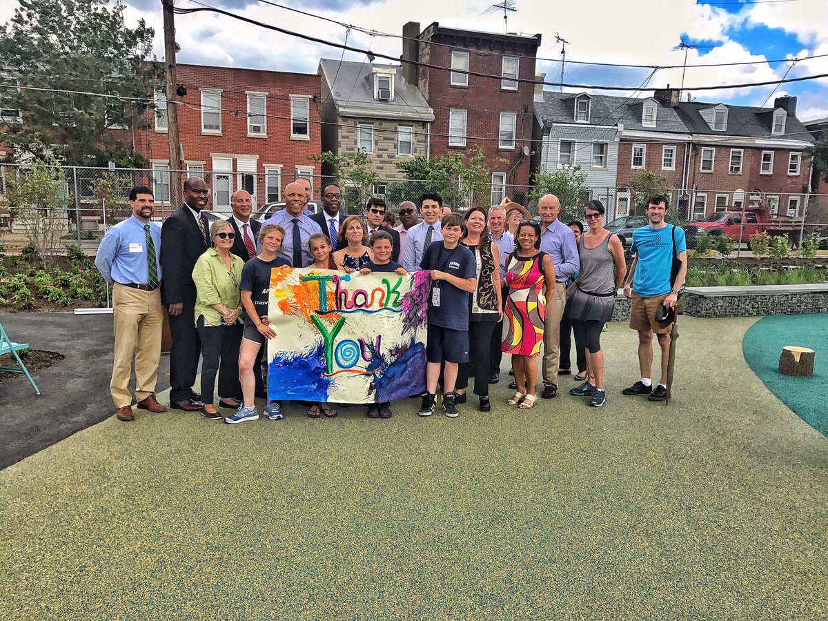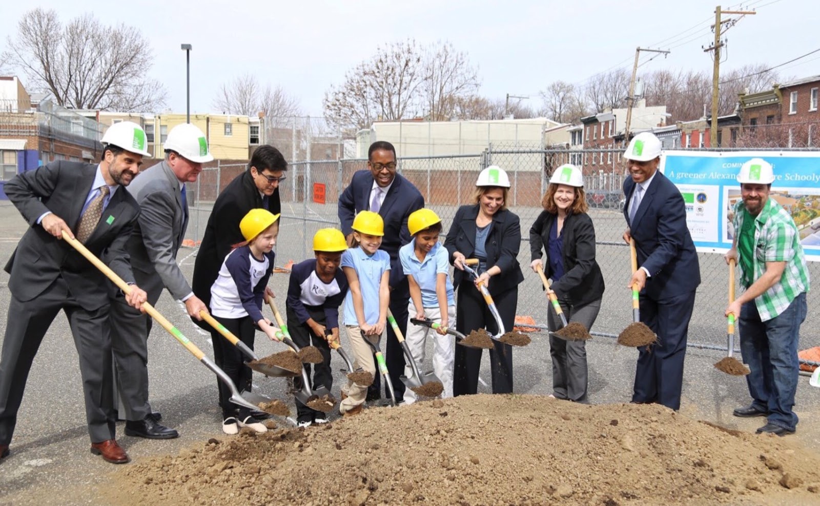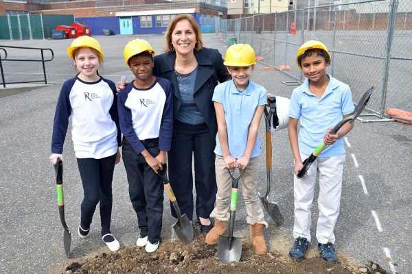 Principal Jenkins and students at the ground breaking ceremony for the New school yard.